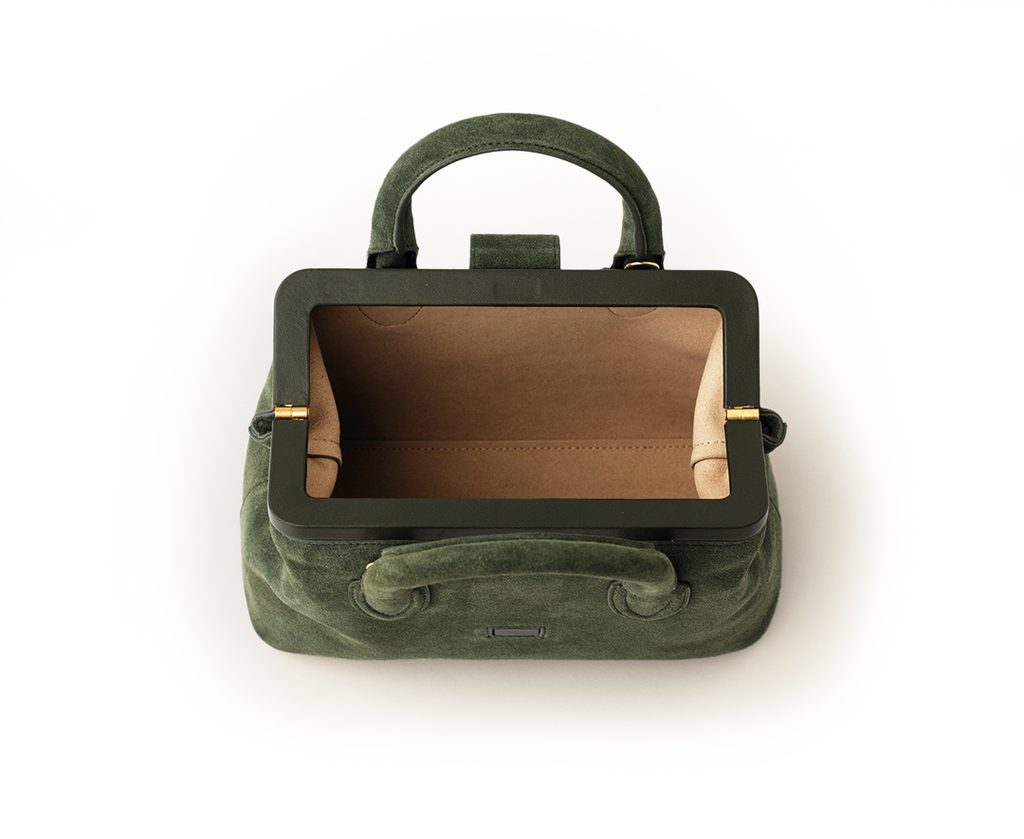 • Trims, edges, handles, and shoulder strap in tone-on-tone calfskin leather.