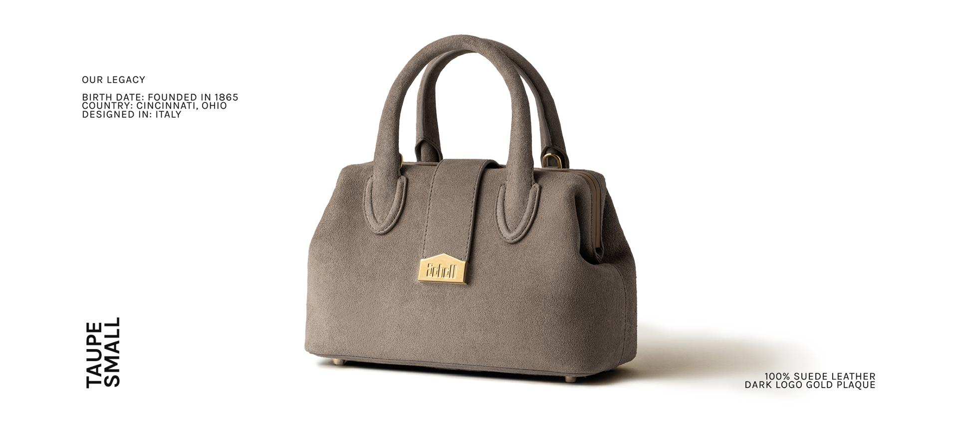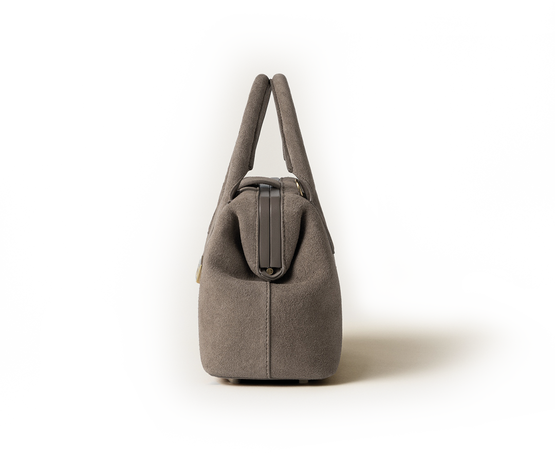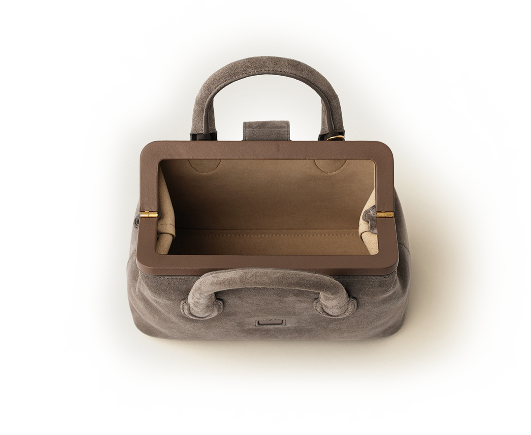 • Trims, edges, handles, and shoulder strap in tone-on-tone calfskin leather.